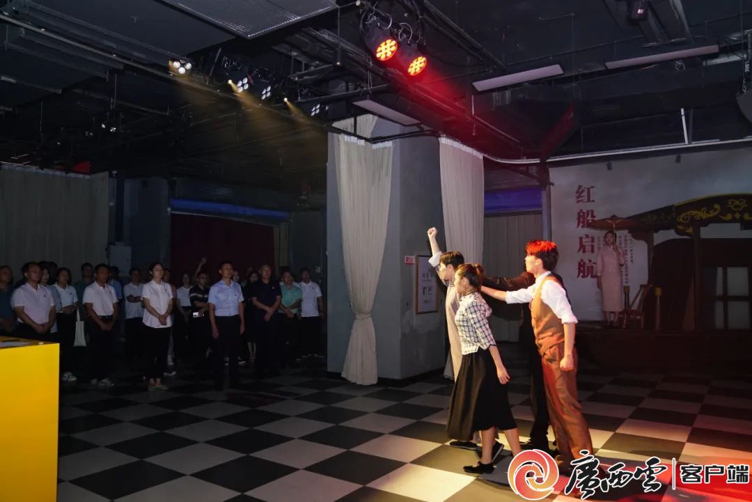 沉浸式体验党课现场。 来到“红船”旁,面对鲜红的党旗,党员们一起举起右手重温入党誓词。“我志愿加入中国共产党,拥护党的纲领,遵守党的章程……”庄严的誓言,既是初心使命的承诺,更是接续奋斗的赤诚告白。