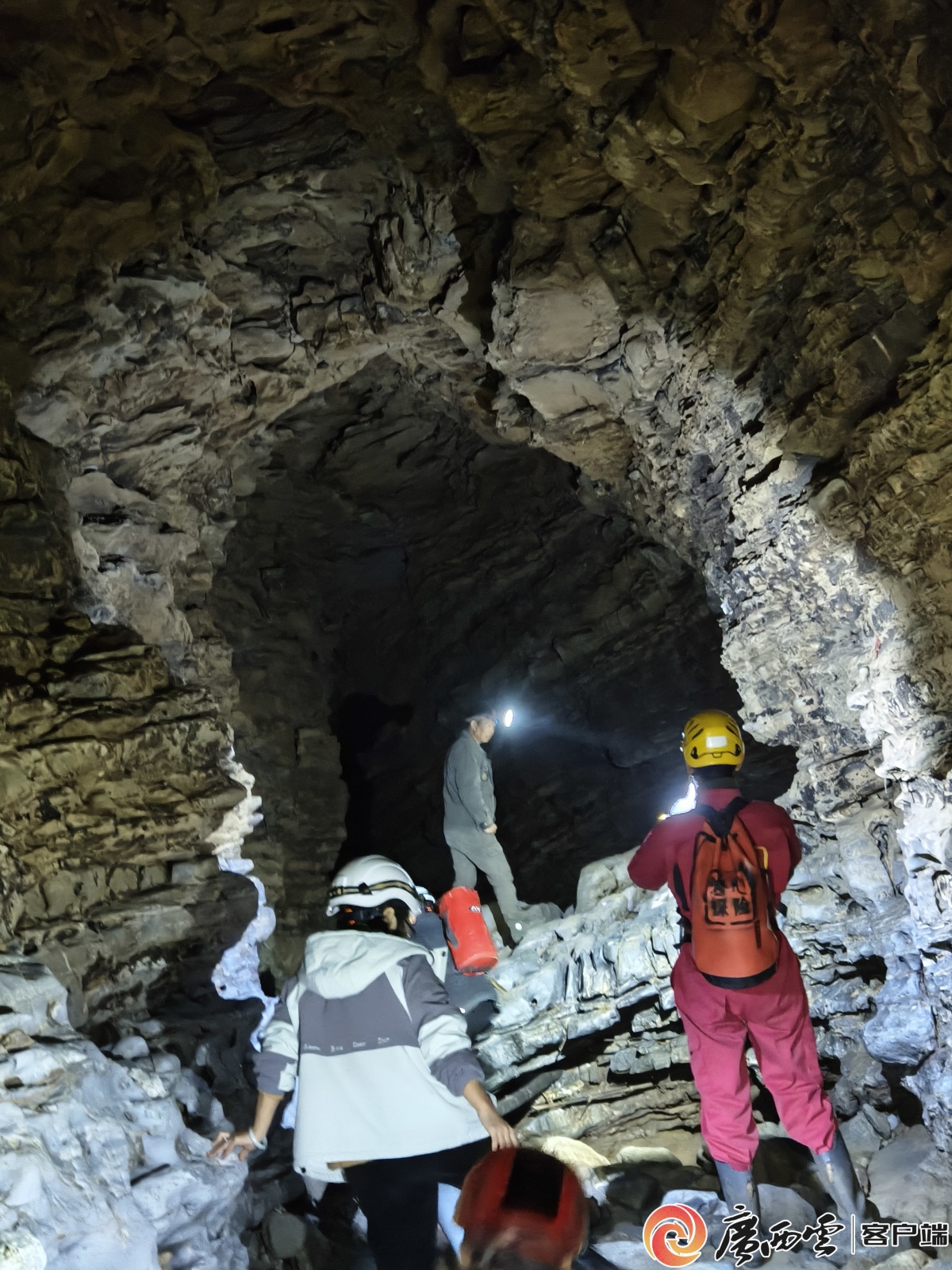 探险队考察铜板屯的地下溶洞。广西云-广西日报记者 覃文武 摄
