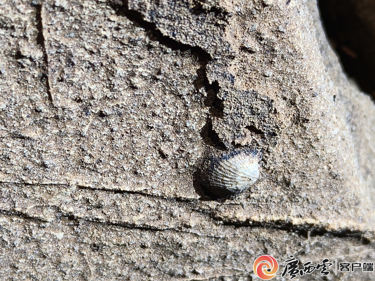 洞壁上的海洋古生物化石。广西云-广西日报记者 覃文武 摄