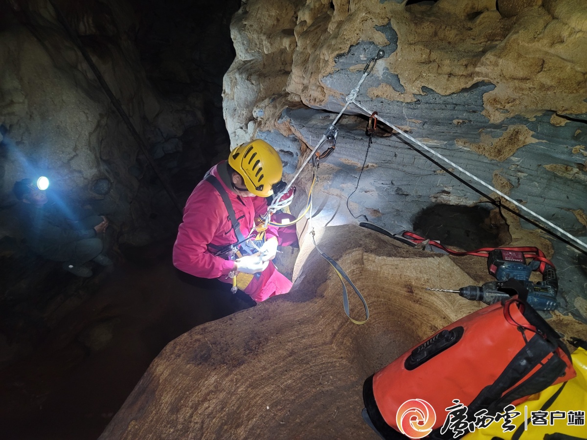 探险队队长架设SRT线路。广西云-广西日报记者 覃文武 摄