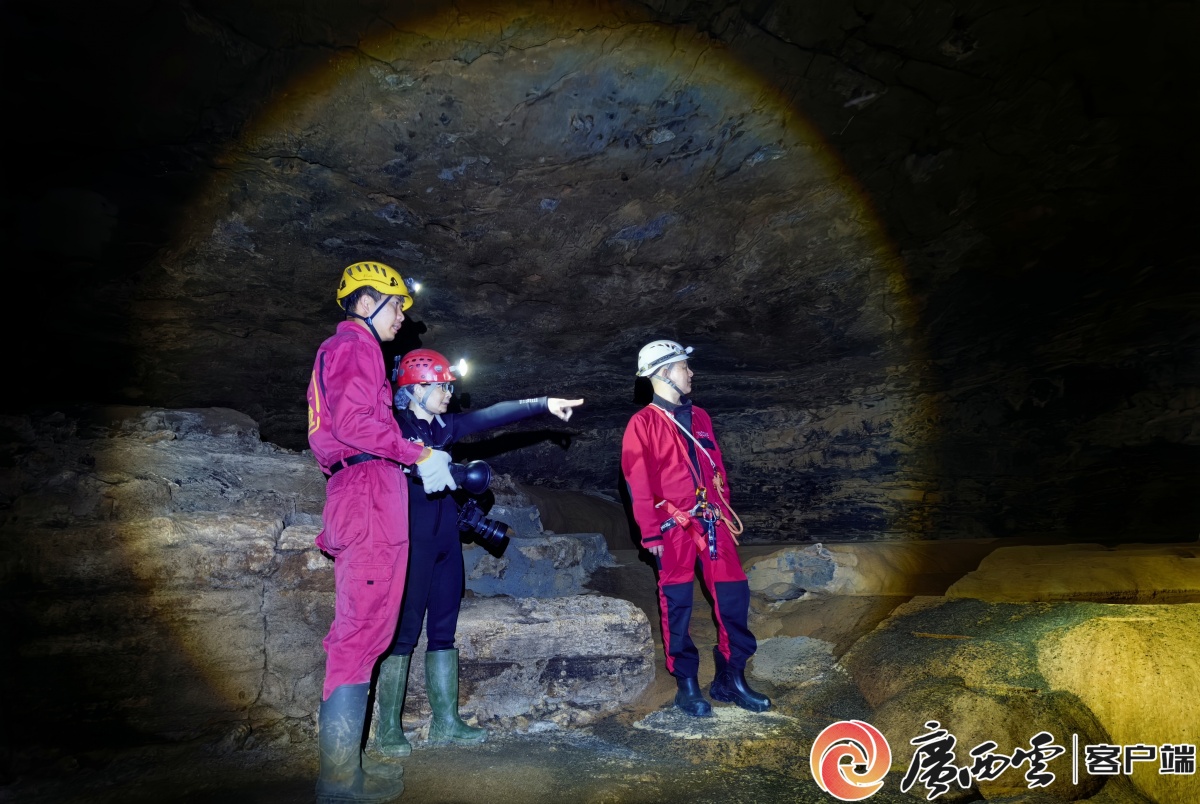 探险队考察铜板屯的地下溶洞,这里的海洋古生物化石十分丰富。广西云-广西日报记者 覃文武 摄